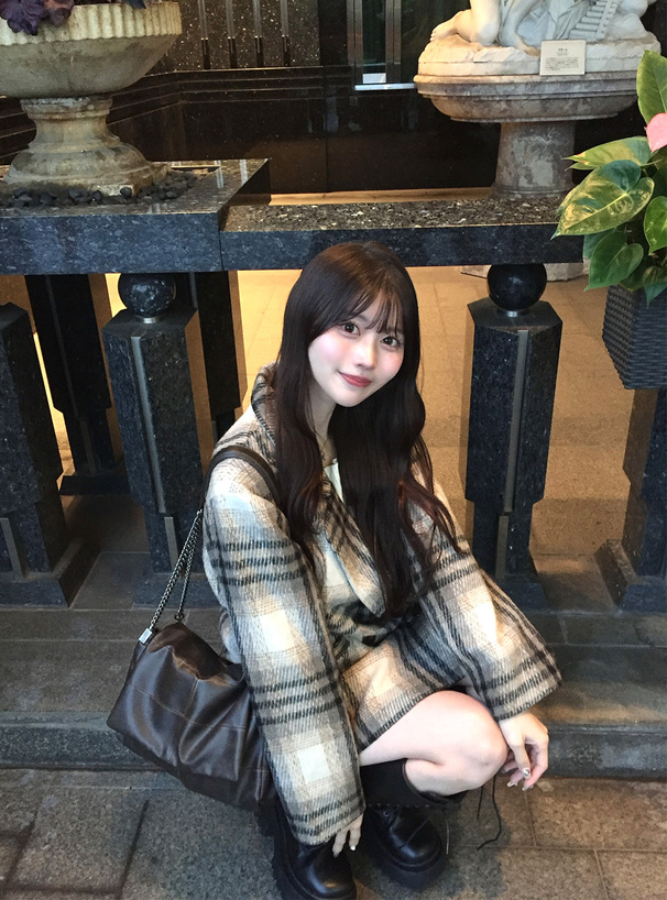 フロントにあしらったマーブル調のダブルボタンもアクセントに。