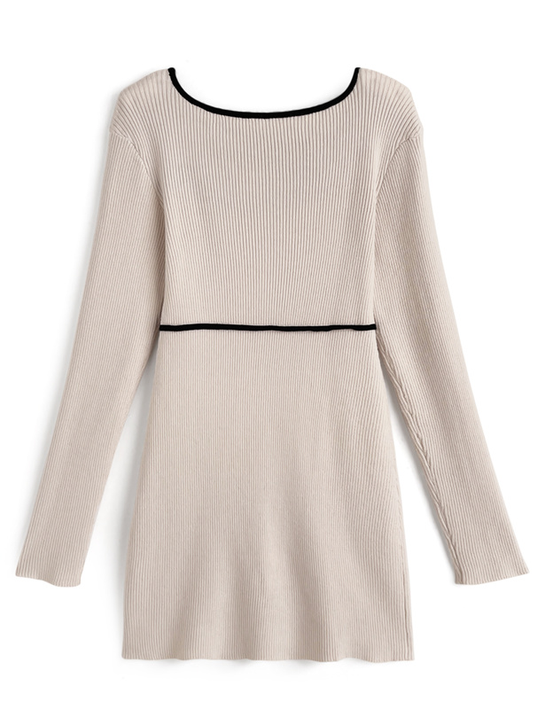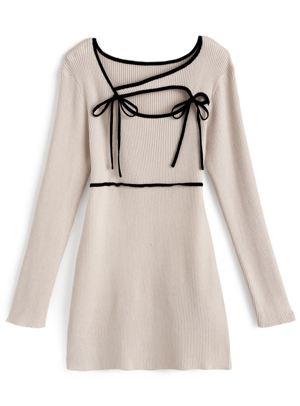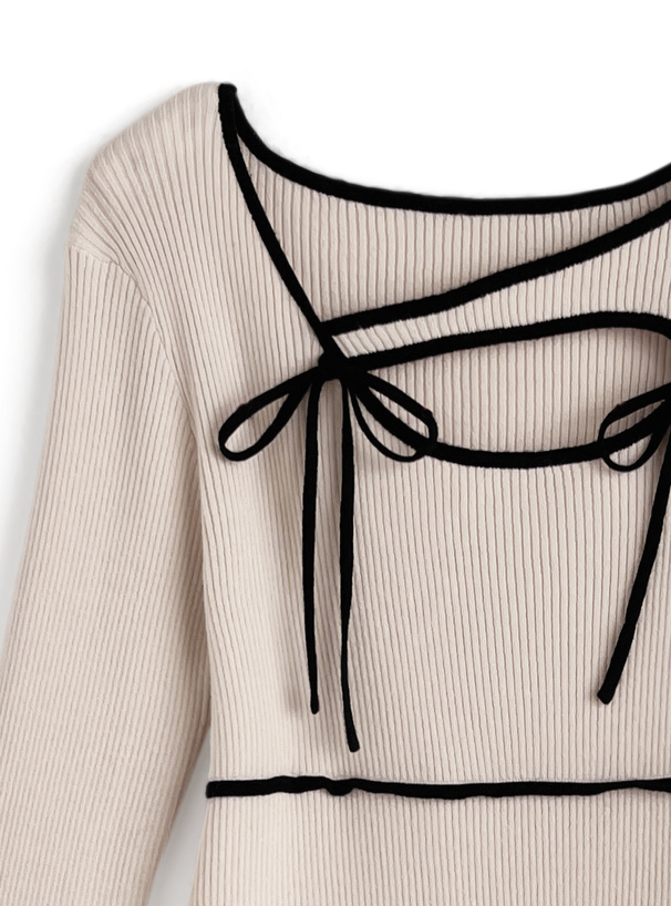 ダブルリボン配色パイピングリブニットトップス[gn552]