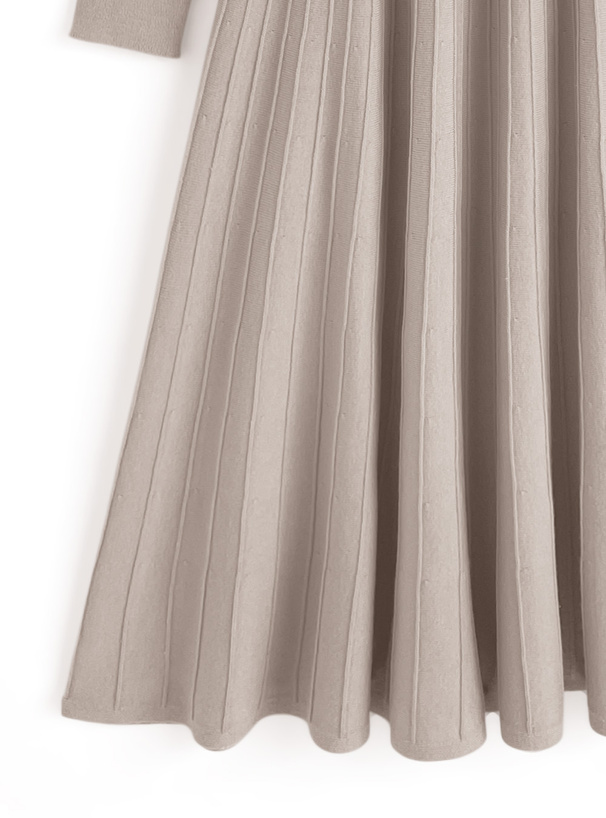 サムホール付きタートルネックニットフレアワンピース[dr646]