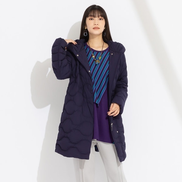 寒い季節も頼りになるのはやっぱりダウン。釦などパーツをなるべく表に見せずすっきりとシンプルなデザインに仕立てています。トレンド感のある丸みのあるステッチが可愛らしくカジュアルにもきれいめにも合わせられます。