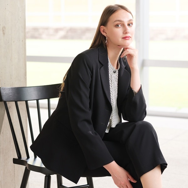 ビジネスシーンはもちろん、行事などかしこまったシーンにも着られるベーシックで綺麗なジャケット。流行に左右されず着られるシンプルなデザインです。