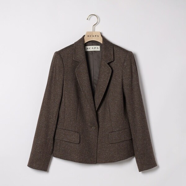 ぽこぽことしたネップが星屑のように浮かび上がる、クラシカルなツイード素材のジャケットです。秋冬のスタイリングに相応しい、正統感のあるノッチドラペルを採用。きちんとした印象で楽しめます。すっきりとした仕立てと短めの着丈で、着こなしのバランスを整えてくれる1点。袖口を折り返すアレンジも可能です。