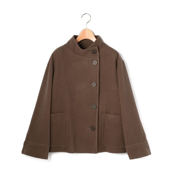保温性に優れたウールメルトン素材で仕立てたあたたかなムードのコート。スタンドカラーとフロントのアシンメトリーな左寄りのボタン配置がスタイリッシュなデザインポイント。ショート丈で上半身がコンパクトにまとまり、バランスよく着こなせます。毎日のコーディネートにマッチするシンプルさも魅力の一つです。