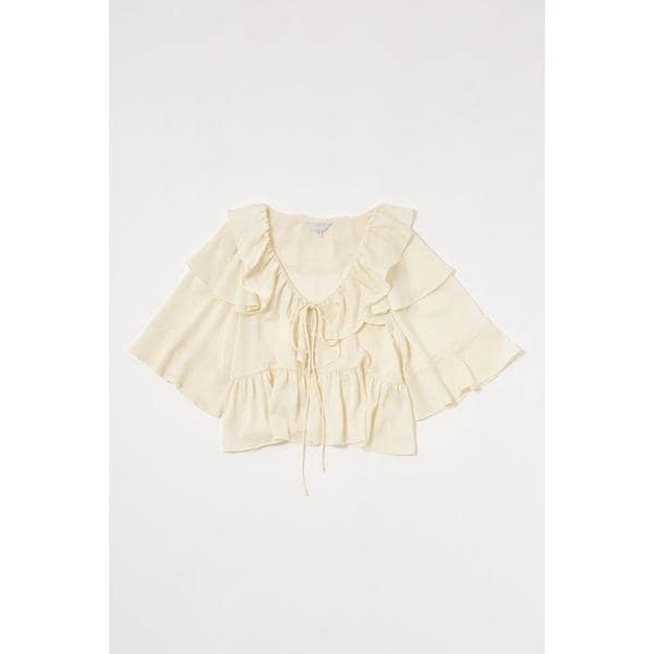 【FLOWER PATTERN FRILLS TOP / フラワーパターンフリルトップス】■ポイント&ディテール胸元にボタンがついた小花柄をあしらったレーストップス。着丈は短くしてるので1枚でも羽織としても着回しのきくアイテム。胸元と袖周りが紐で絞れる仕様になっています。■スタイリングスラックス、デニムと合わせた時にベルトが見える着丈なのでスタイルアップが叶います。■生地透け感:なし裏地:なし伸縮性:なし光沢感:なし■商品のお気に入り登録お気に入りアイテムの再入荷・在庫1点などの通知を受け取ることができます。■ブランドのお気に入り登録新作アイテムの入荷や人気アイテムの再入荷、おすすめトピックスなど、いち早くブランドの情報を受け取ることができます。[注意事項]※画像の商品はサンプルです。実際の商品と仕様、加工が若干異なる場合があります。※画像の商品は光の照射や角度、お使いのモニター環境により、実物と色味が異なる場合がございます。※着用、お取り扱いの際は、アテンションタグをご確認ください。