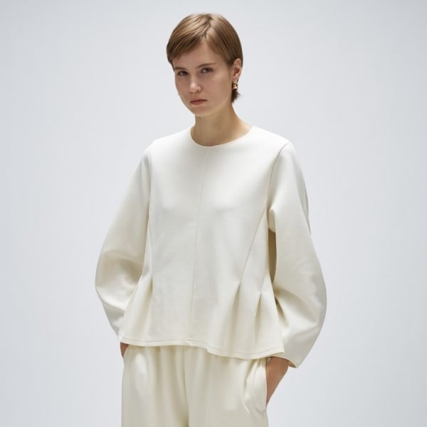 ・丸みのある袖と上品なペプラムシルエットで女性らしさを引き立てます。