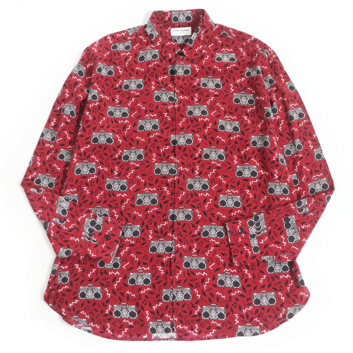 【ドンドン見直し】美品□2019年製 SAINT LAURENT PARIS/サンローランパリ 564172 ラジカセ シルク100% ロングスリーブ 長袖 柄シャツ レッド 41 伊製 正規品