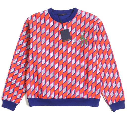 【ドンドン見直し】未使用品▼22AW LOUIS VUITTON ルイヴィトン ヴァージル・アブロー ダイヤモンドダミエ スウェット/プルオーバー オレンジ×ブルー L メンズ イタリア製 正規品