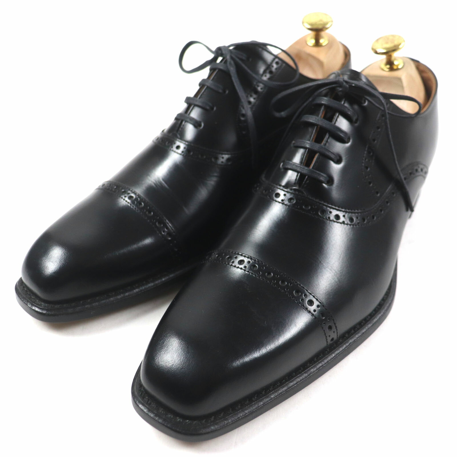 未使用品□REGAL リーガル レザー キャップトゥ ストレートチップ レースアップ ドレスシューズ ブラック 25cm 箱付き 日本製 メンズ【中古】