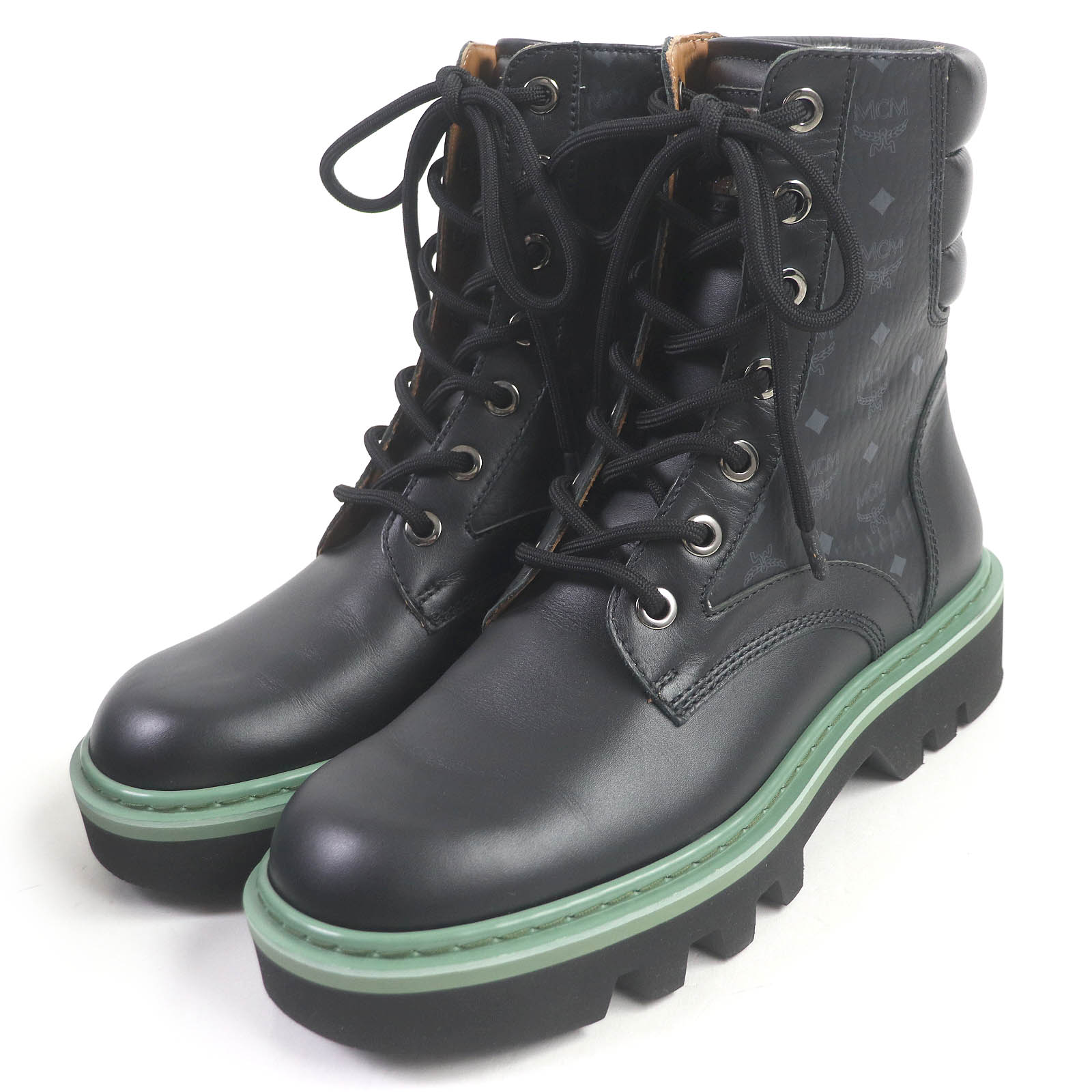 美品□MCM エム・シー・エム ヴィセトス カーフレザー アンクルブーツ コンバットブーツ ブラック 42 保存袋付き イタリア製 メンズ レディース 定価91,300円