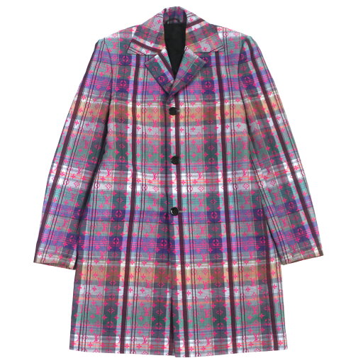 極美品☆LOUIS VUITTON ルイヴィトン レザーパイピング モノグラムフリンジ ノーカラーコート ホワイト インディゴ 34 イタリア製 正規品 レディース【中古】