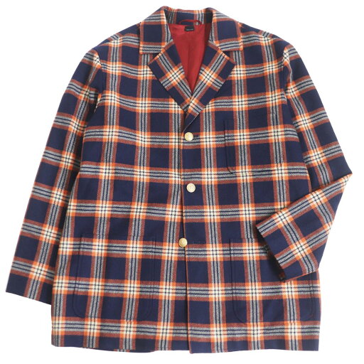 【ドンドン見直し】未使用品□2020年製 GUCCI/グッチ 612227 チェック柄 ロゴ金ボタン カシミヤ100% シングル アンコンジャケット 紺/オレンジ 46 伊製 正規