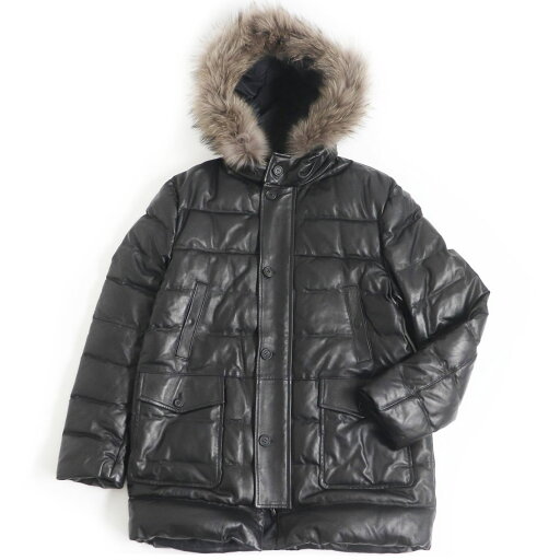 【ドンドン見直し】極美品□20AW EMMETI/エンメティ ティアゴ ラムナッパシルクレザー ラクーンファーフード レザーダウンコート ブラック 52 伊製 正規品