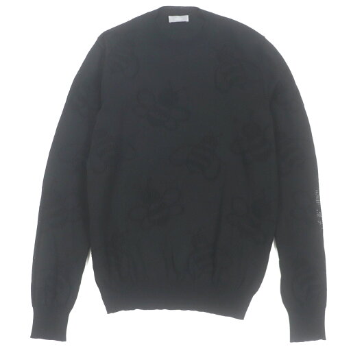 美品▼DIOR KAWS ディオール オム カウズ 923M640AT943 コットン100% 蜂柄 クルーネック 薄手 ニットセーター ブラック XS イタリア製 正規品 メンズ