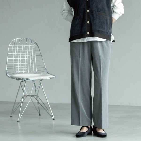程よい厚みときちんと感がありながら、穿き心地の良さと多機能性にこだわった、美脚イージーワイドストレートパンツです。