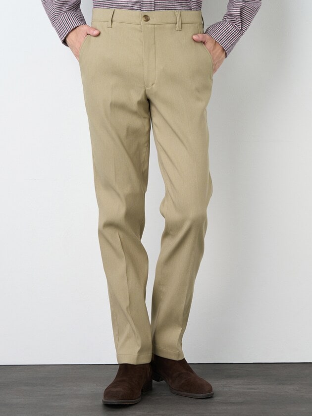 大人気 「甘やかしパンツ」 2025年秋冬シーズンの新作。柔らかく良く伸びる素材とおなか周りのウエストストレッチ仕様でスッキリ見えシルエットを保つこのパンツは、まさに履く人を「甘やかし」 てくれるような履き心地のアイテム。冬向けに裏面は起毛加工を施し暖かさも追加。タテ方向に細い柄感のあるピケ織りの生地は品の良い表情で汎用性も高く、普段着から少しかしこまったシーンまで幅広く対応する1着。