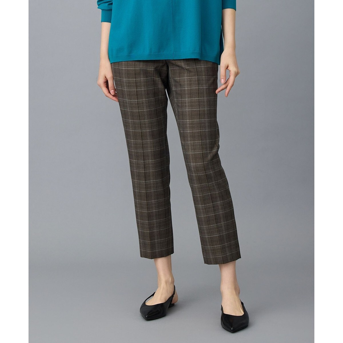 裏起毛で温かみのある定番のチェック柄テーパードパンツ■デザイン自由区定番のセンタープレス入りテーパードパンツです。脚のラインが美しく見える程よいフィット感に拘ったシルエットです。前のウエストベルトにはストレッチインベルという、生地に合わせて伸縮するベルト芯を入れることで、見た目はギャザーが寄らずすっきりと綺麗なのに、着用すると伸縮性があります。後ろのウエストベルトのゴムギャザー仕様と相まって、より快適な穿き心地です。落ち着いたトーンのチェック柄で、季節感のあるスタイリングを演出してくれます。■素材膨らみと落ち感を併せ持ったポリエステル・レーヨンの混紡糸を高密度に織り上げて作った2WAYストレッチ素材です。適度なハリ感と、着心地の良いキックバック性があります。寒い時期にも着て頂けるように裏起毛加工を施し、柔らかく温かみのある穿き心地です。ソフトでしなやかな風合いになるローズ加工と、小雨程度の水をさっと払うことができる撥水加工を施しております。日本の尾州産生地です。■同素材アイテム裏起毛テーパードパンツ(PRWRGW0515)裏起毛ワイドパンツ(PRWRGW0517)裏起毛チェック柄ワイドパンツ(PRWRGW0518)