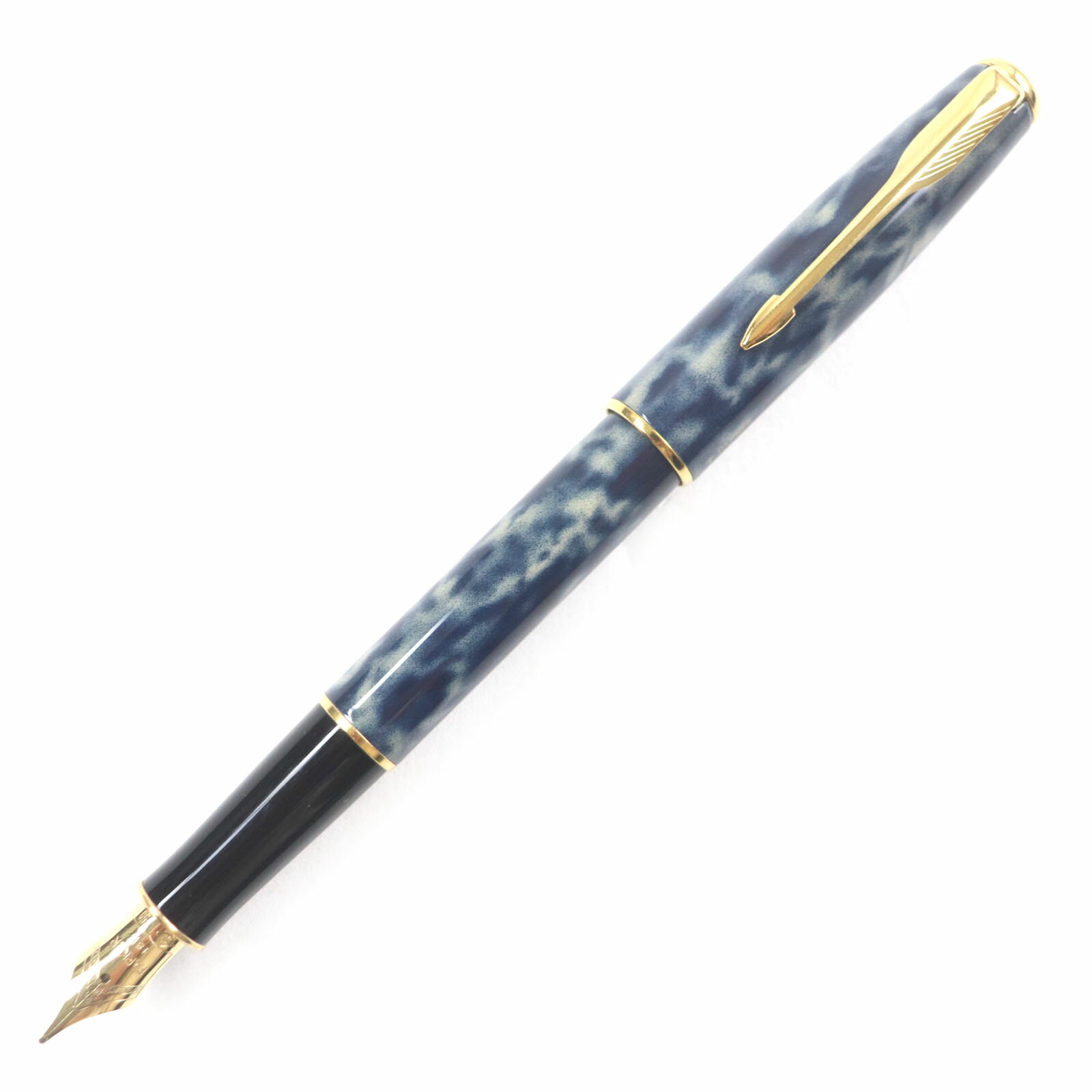 極美品▼PARKER パーカー デュオ フォールド 18K マーブル ブルー インターナショナル 万年筆 ネイビー ブラック ゴールド 英国製 メンズ【中古】