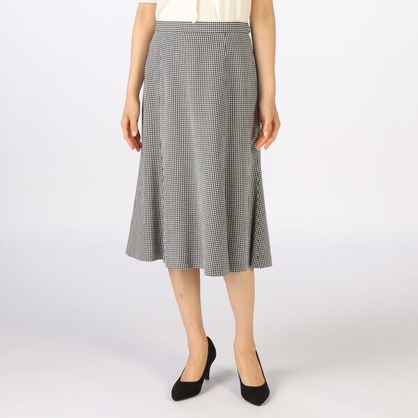 細かな格子がさわやかなムードのミニバスケット柄のミディ丈スカート。膝下のレディな丈感がエレガントなポイント。立体感のあるパターンのパネルスカートで、たっぷりのドレープのあるシルエットも魅力。お手持ちのトップスに合わせて、フェミニンな雰囲気のお出かけコーディネートが完成するアイテムです。
