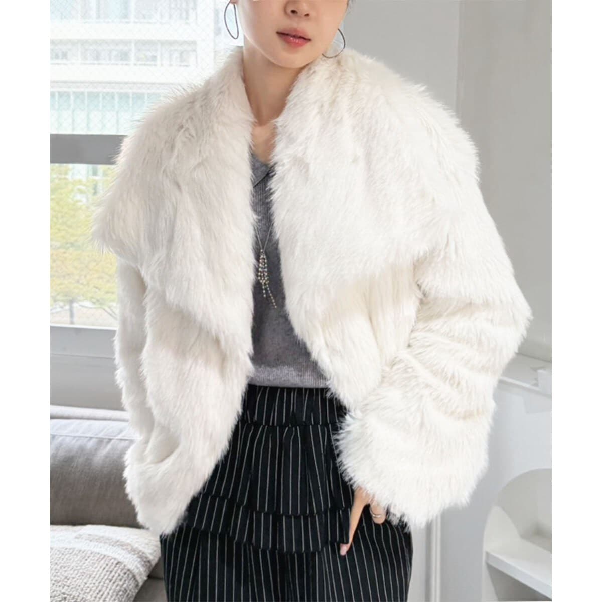 ビッグカラー フェイクファー ショートコート
