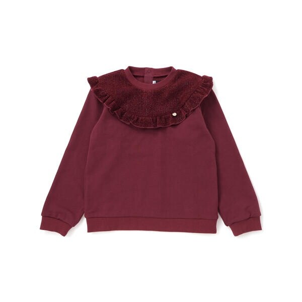 ラメ起毛のヨーク切り替えが目を引く女の子らしいトレーナー。