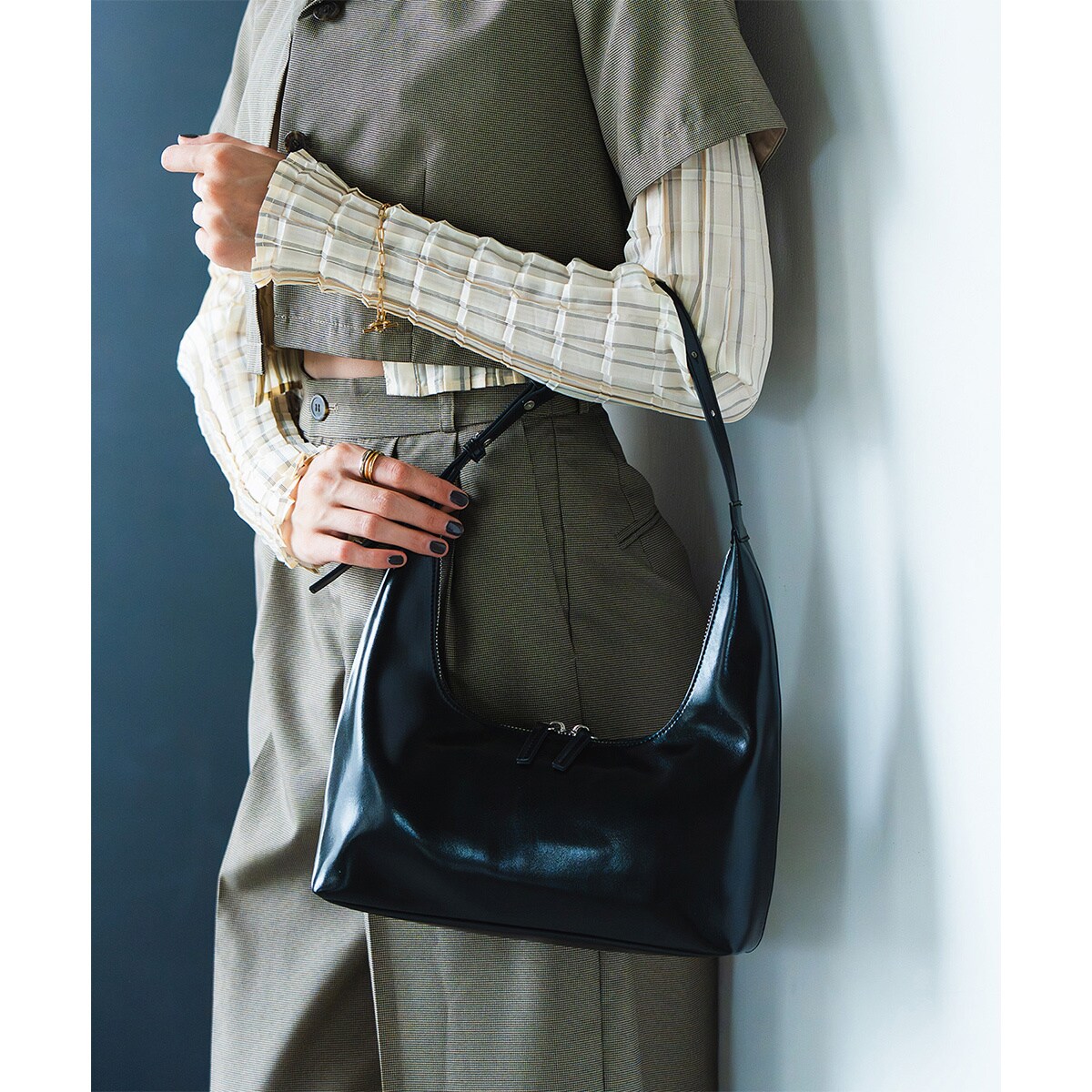【LA MARGE】【軽量】マットナイロン ハーフムーン ショルダーバッグ
