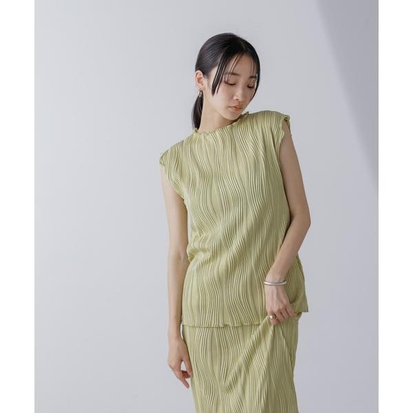 立体感のあるリップル素材が女性らしさを惹き出してくれるカットトップス。素材にポイントがあるので、スタイリングのアクセントになってくれるのが魅力的。シンプルなパンツを合わせるだけで、こなれ感のある着こなしに導きます。同素材のスカートと合わせたセットアップスタイルもオススメです。