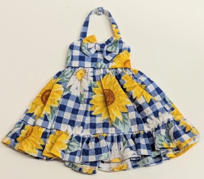 プリュム*しっぽ MDDサイズ 紺色 ひまわりワンピース