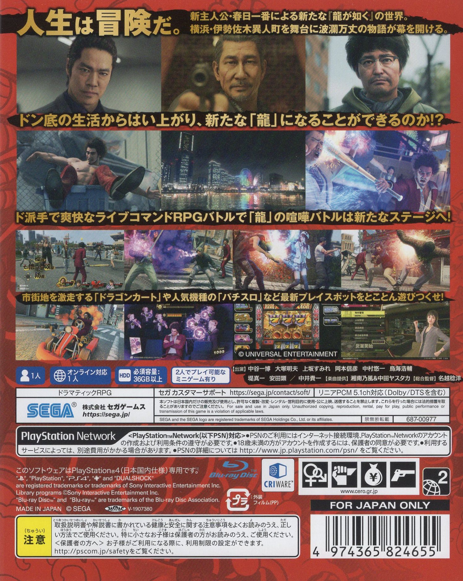 PS4 龍が如く7 光と闇の行方 DLC無し ゲームソフト SEGA 中井貴一 堤真一 安田顕 芸能人 セガ 桐生一馬 名越稔洋 横山昌義