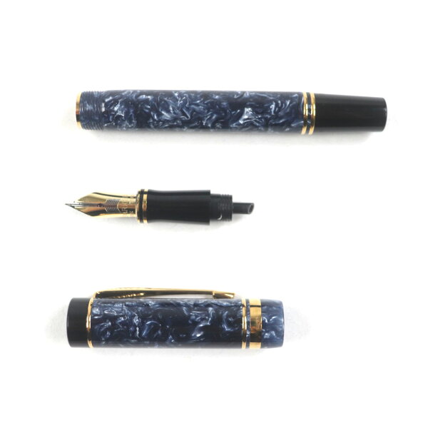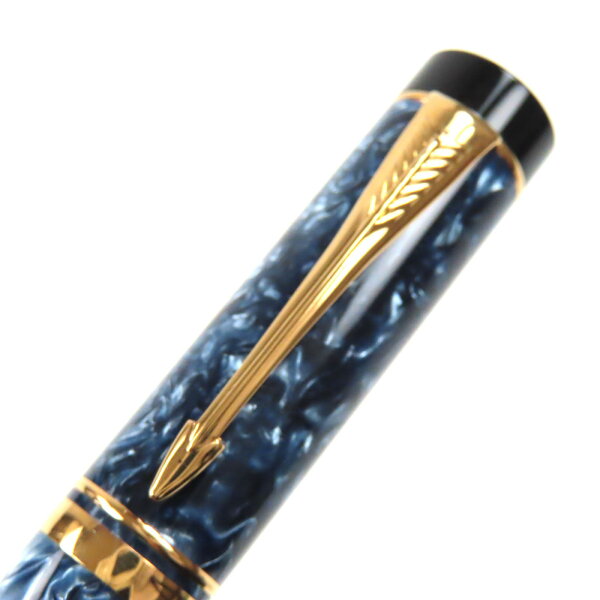 極美品▼PARKER パーカー デュオ フォールド 18K マーブル ブルー インターナショナル 万年筆 ネイビー ブラック ゴールド 英国製 メンズ【中古】