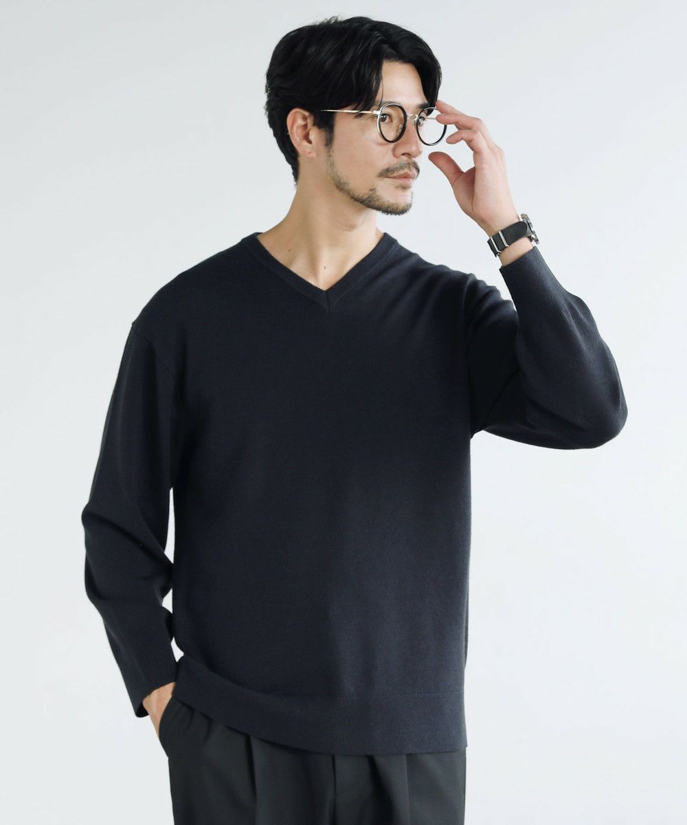 黒 ブラック Vネック 長袖ニット ベーシック 定番 着回し 通勤 カジュアル