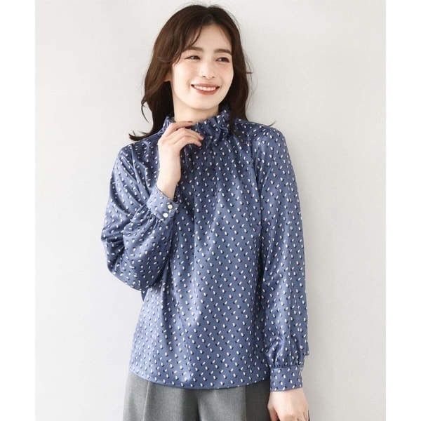 幾何柄バンドカラーブラウス/洗える