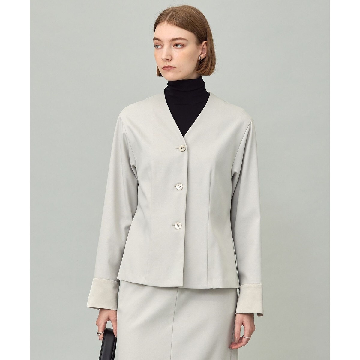 ■デザインきれい目な印象で普段使いからビジネスまで幅広く活躍するカーディガンブラウスです。ボタンを閉めてブラウス感覚での着用から、ボタンを開けてカーディガンライクな着用まで、一枚でコーディネートの幅が広がるアイテムです。程よい光沢と裏起毛がきれい見えと暖かさを両立し、気温調整の難しいこれからの時期に大活躍します。同シリーズのボトムスとのセットアップ着用もおすすめです。