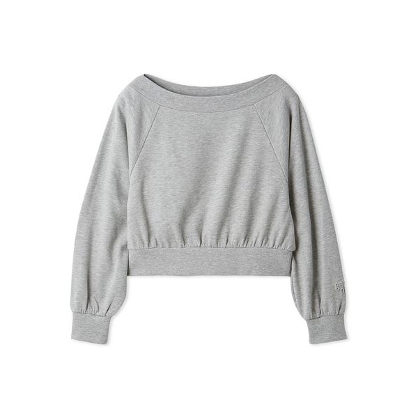裏面が微起毛のやわらかいコットン混裏毛のスウェットを使用した、カジュアルでトレンド感のあるシリーズです。襟ぐりを大きく開けたプルオーバーは、オフショルダーっぽくも着こなせる1枚。ラグランスリーブと短め丈のスポーティな印象の中に、女性らしさがほんのり漂います。左袖にワンポイントでエンボス加工のブランドロゴを入れました。色はくすんだ風合いのブルーとグレーの2色展開。同シリーズのロングパンツに合わせて、ワンマイルや機内着などにもおすすめです。