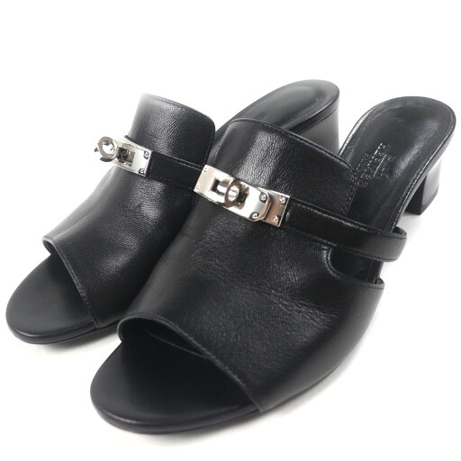 美品▲HERMES エルメス シェーヌダンクル Hモチーフ パラディウムプレーテッド エナメル カフスボタン カフリンクス ブラック シルバー メンズ【中古】