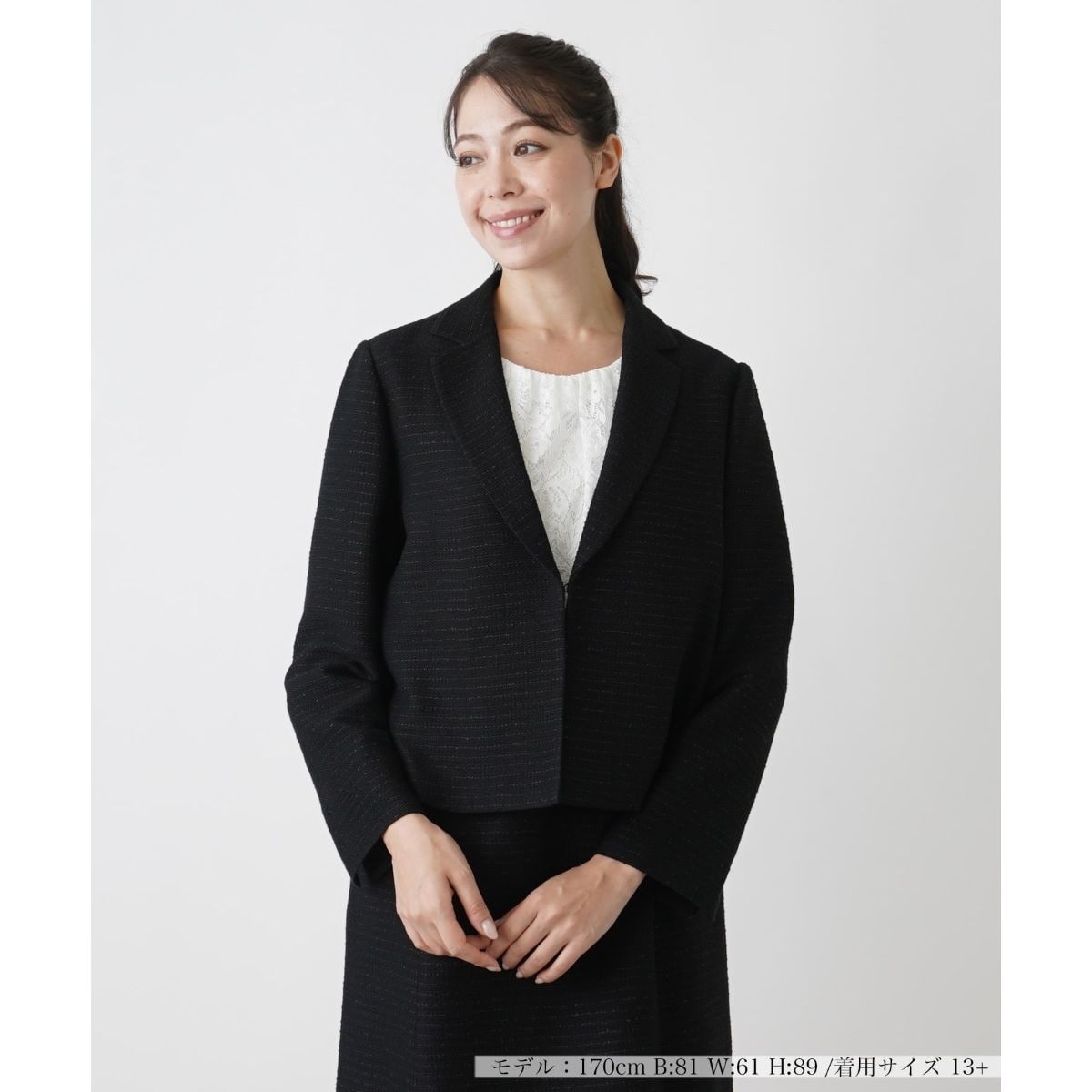 大人の女性らしい上品さを感じさせながらも、軽やかな印象でスタイリングできるテーラードジャケット。ざっくりと織り上げた独特な表情のある生地を使用しており、程よい丈感のコンパクトなシルエットがスタイリッシュなムードを引き立てる一着。フロントはホック留めでシンプルにデザインしており、スリット入りの袖口は折り返してのアレンジも可能。落ち着いたシックな色合いでブラウスやボトムスともコーディネートしやすく、使い勝手のよいアイテムです。
