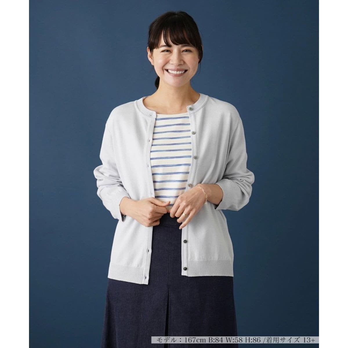 ハイゲージで丁寧に編み込んだ、さらりとしたニットの風合いが心地よいクルーネックカーディガン。すっきりとした印象でありながら、程よいリラックス感があり着心地も快適。無駄な装飾を省いたミニマルなデザインでコーディネートしやすく、お手持ちのニットやカットソーに重ねてさらっと羽織るのに便利なアイテムです。ほんのり光沢を放つ貝調ボタンがさりげないアクセントに。