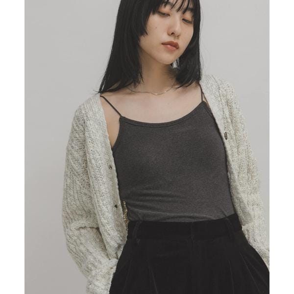 ふわっとした起毛感のある素材を使用したキャミソール。肩紐部分は柔らかなゴムを使用しているので着心地も良いです。取り外し可能なカップ付き、程よいフィット感なのでシャツやジャケットのインナーにぴったりです。