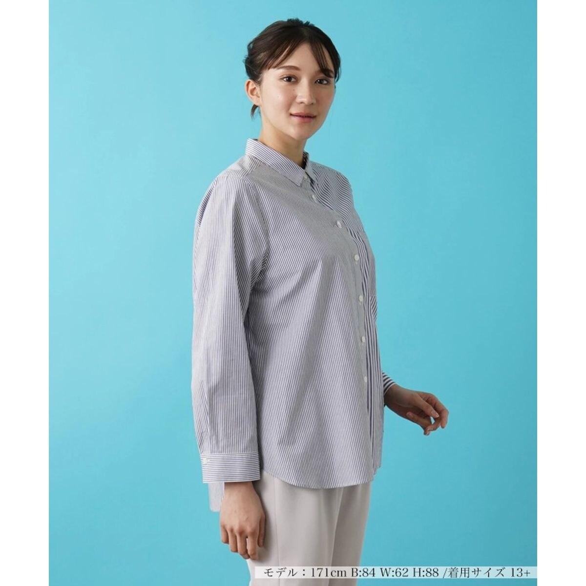 巧妙なストライプの切り替えがコントラストを作る、爽やかなコットン素材のカジュアルシャツ。コンパクトな襟元が洗練された雰囲気を醸し出し、左胸にはパッチポケットを配してバランスよく仕上げています。シンプルなパンツとの組み合わせはもちろん、フレアスカートを合わせたフェミニンな着こなしもおすすめ。清潔感とスタイリッシュさを兼ね備えた一枚は、どんなコーディネートにも自然に溶け込みます。