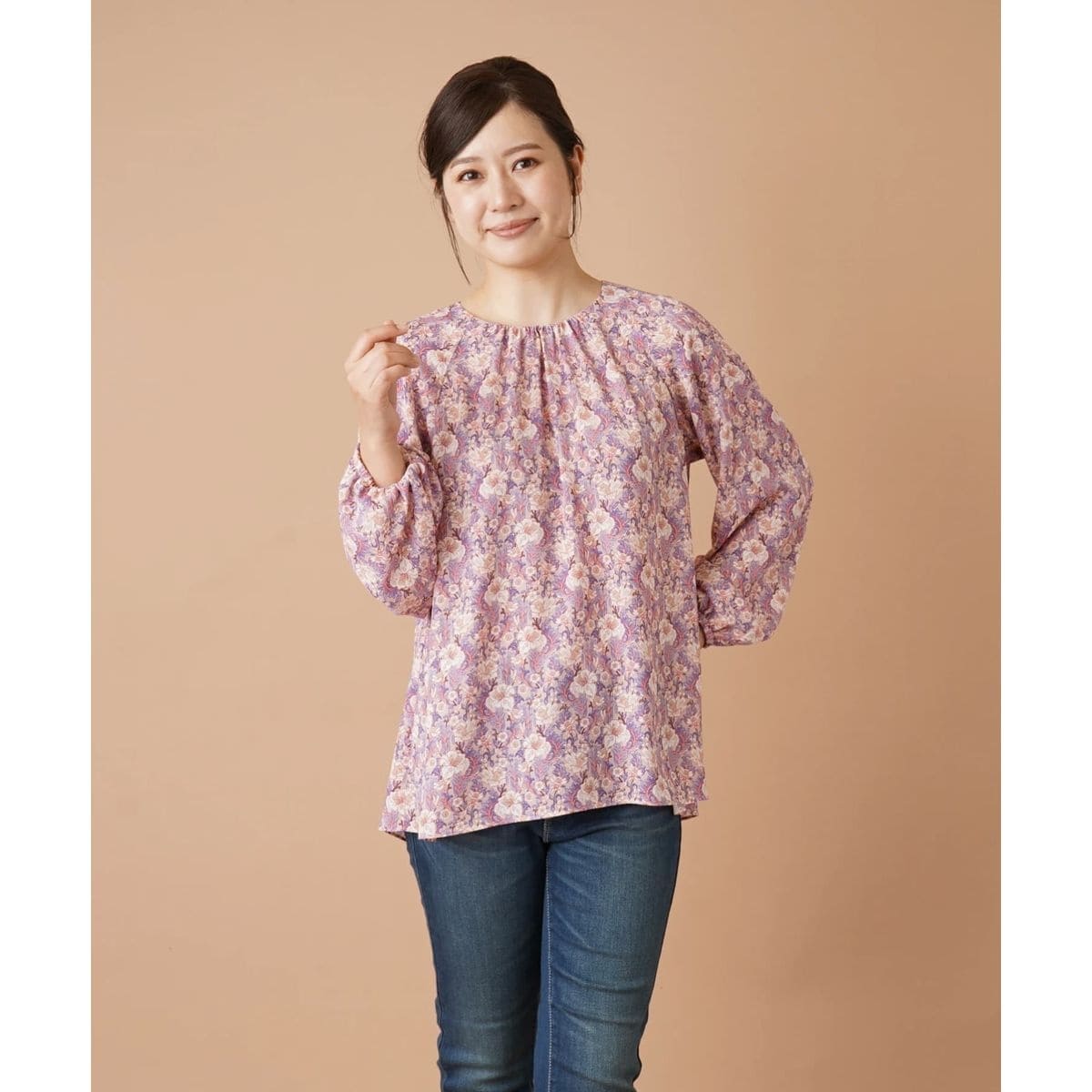レトロなムード漂うアーティスティックなフラワー柄をプリントしたスモックブラウス。袖と身頃はふんわりと膨らむボリューミーなシルエットで仕上げ、袖付けはラグラン仕様でリラックス感溢れる着心地を叶えました。袖口はゴム仕様とし、心地よいフィット感をもたせています。バックネック中央の涙あきはループボタンにより開閉が可能。フェミニンなスカートはもちろん、スポーティなパンツとも好相性のアイテムです。