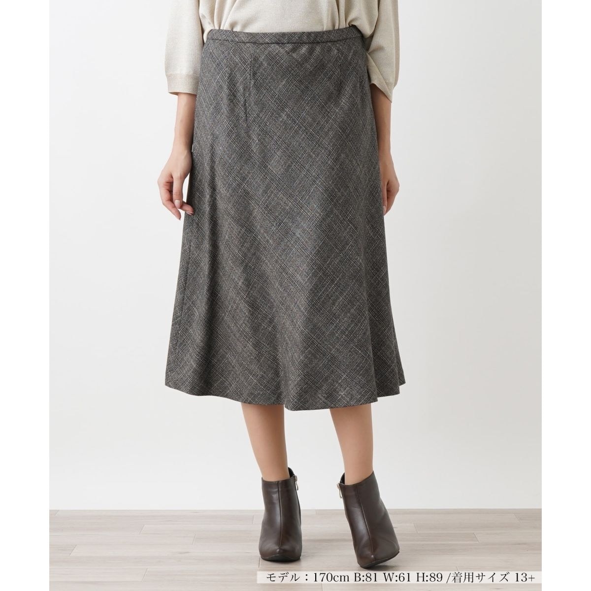 イタリア・ビエラ地区の老舗テキスタイルメーカーBOTTO GIUSEPPE(ボットジュゼッペ)社のチェック素材を使用したフレアスカート。バイアス使いでフレア感を出し、程よく揺れるシルエットがエレガントなデザインです。