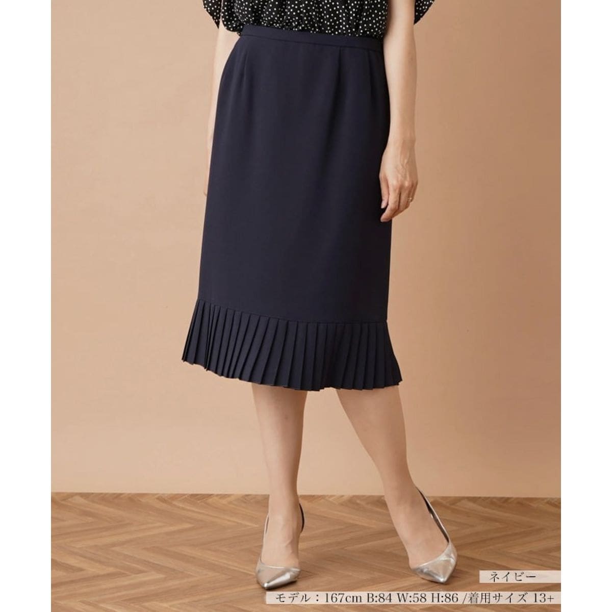 裾周りを繊細なプリーツ加工で切り替えた、エレガントな表情を織りなすミモレスカート。すっきり見えするシルエットで品よくスタイリングできる一枚です。ウエストには適度な伸縮性があり、心地よくフィット。落ち着いたカラーで様々なトップスと合わせやすく、タックインでもアウトでもバランスよくコーディネートできます。サイドホック&ファスナーにより開閉が可能。