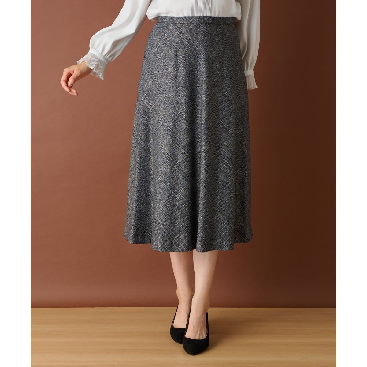 イタリア・ビエラ地区の老舗テキスタイルメーカーBOTTO GIUSEPPE(ボットジュゼッペ)社のチェック素材を使用したフレアスカート。バイアス使いでフレア感を出し、程よく揺れるシルエットがエレガントなデザインです