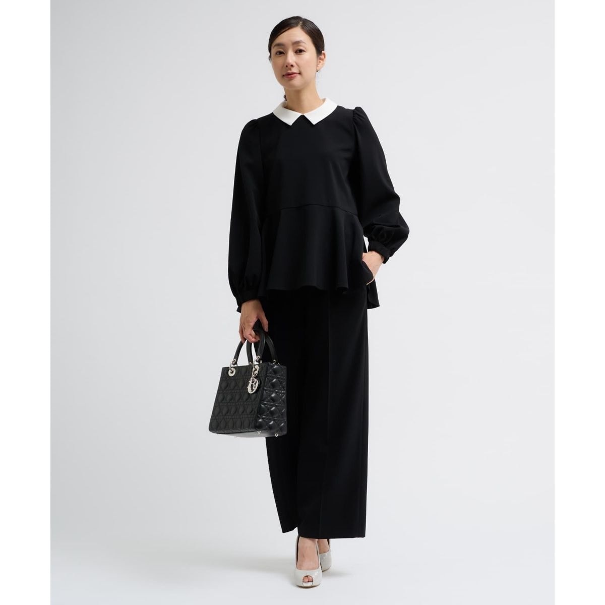 <ブラウス> 本体: ポリエステル90% ポリウレタン10% 衿 ポリエステル100% <パンツ> ポリエステル90% ポリウレタン10%