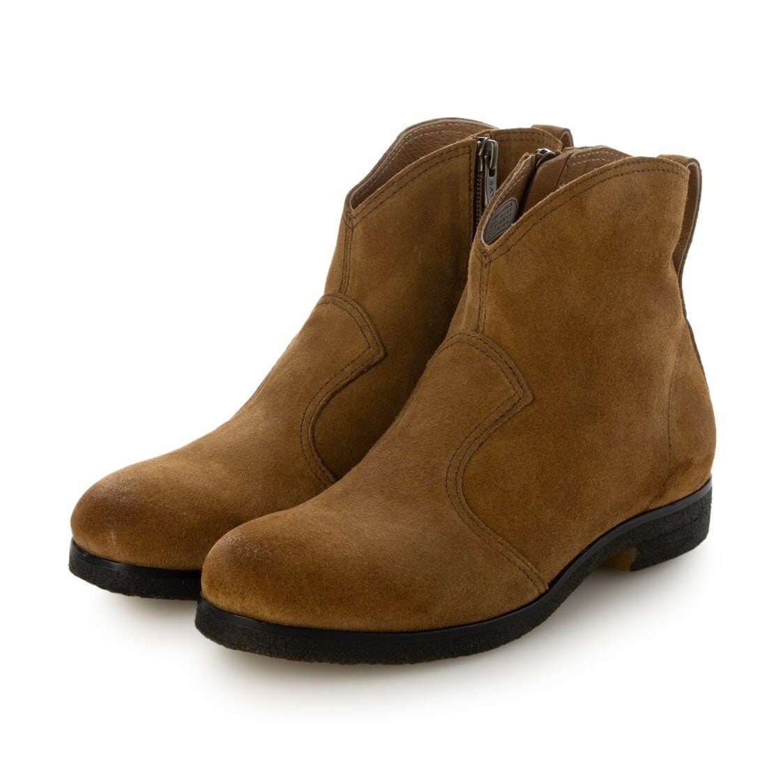 筒裏無しの、さりげないウエスタンテイストに仕上げたショートブーツ。