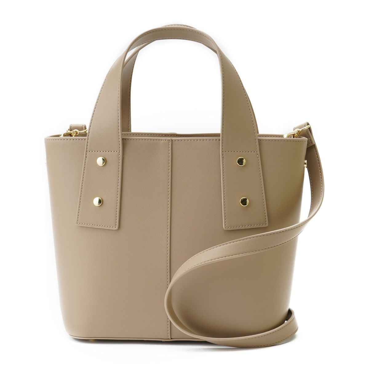 ミニマルかつ上品なデザインで、様々なコーディネートにスマートに調和するトートバッグ。しっかりとした底マチやインナーポケットを備えているため、見た目以上の収納力があり、持ち物をすっきりと整理しやすい設計に。開口部はスナップボタン留めでスムーズに開閉できるのも嬉しいポイントです。取り外し可能なショルダーストラップ付きで、手持ちと肩掛けの2wayスタイルが楽しめる仕様に。オン・オフ問わず幅広いシーンで活躍し、デイリーから通勤、ちょっとしたお出かけまで幅広く対応するバッグです。