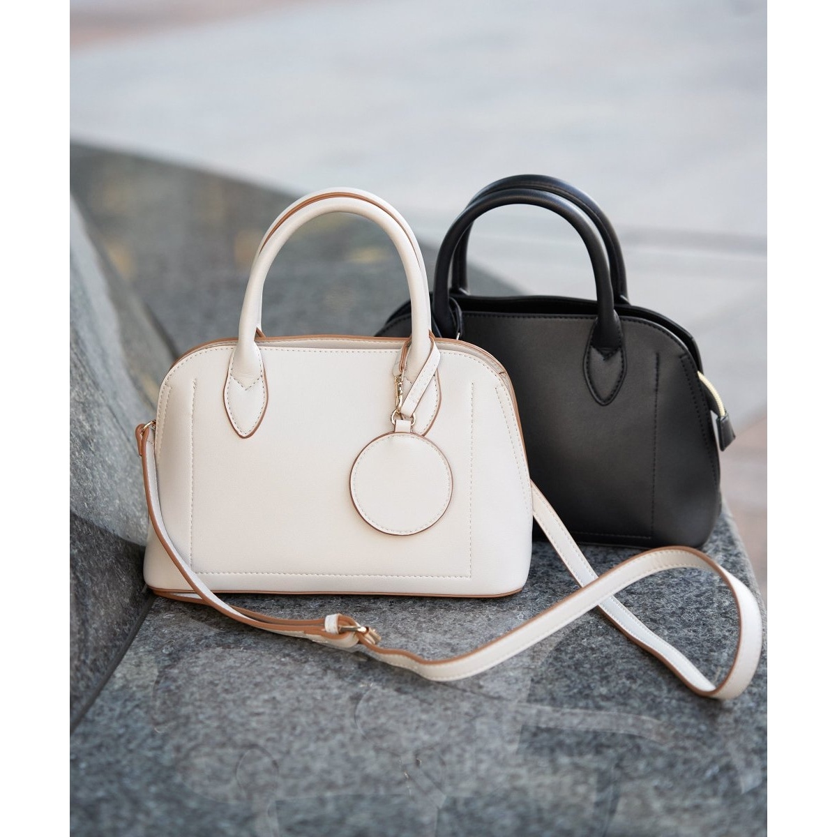 上品なツヤ感のある一枚合皮を使用した2WAY仕様のミニトートバッグ。