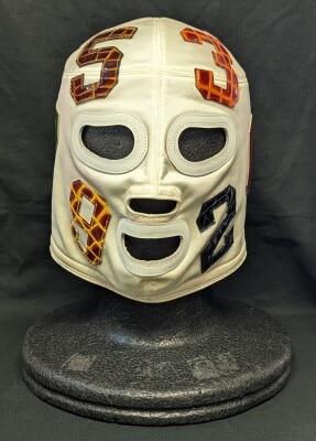 プロレスマスク ローリン製【ローリンJr.(白×金特殊・赤・緑ラメ入りフチ)】 タグなし 本人使用 サイン入り