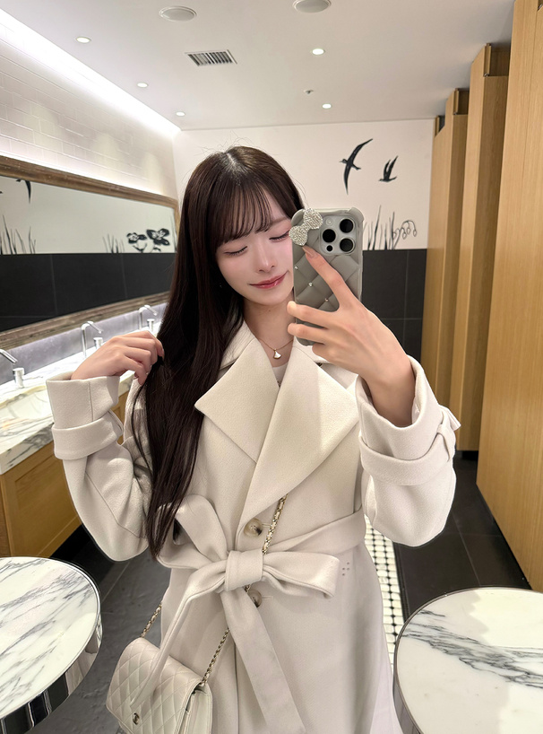 リボンベルト付きビッグカラーロングコート[ze752]