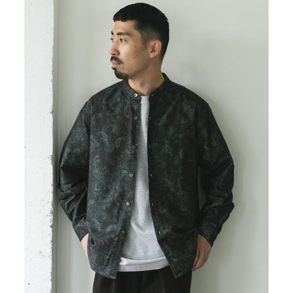 ・両面に起毛を施した厚手のネル生地で仕立てたバンドカラーシャツ