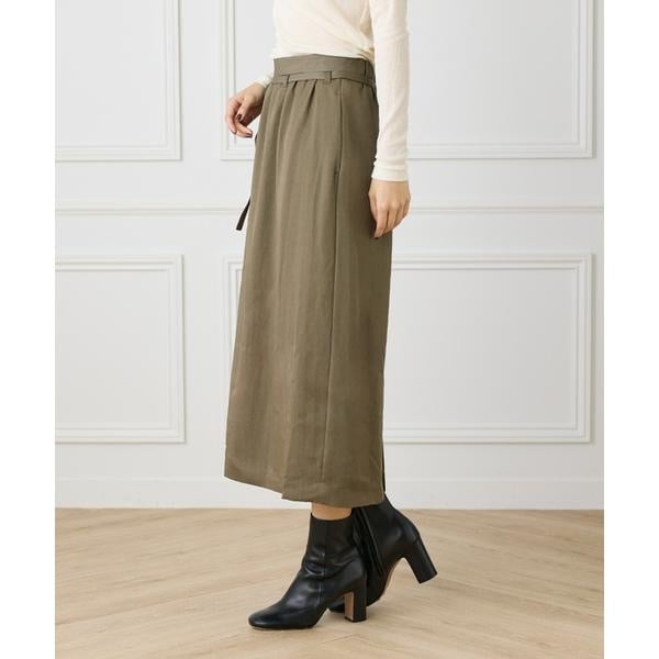 ■デザインスタイルアップを叶えるナローシルエットのAライン。すっきり見えしながら身体のラインを拾いすぎない程良いサイズ感。ウエストは後ろあき、ゴム仕様で着心地よく。共生地の細いタイベルトでアクセントを付けながら調節機能をプラス。スラッシュポケットやイージーなディテールでモード感と快適さを併せ持ったデザイン。■素材心地よいソフトなタッチと程よい反発感が特徴。シルクの様な滑らかな肌触り/上品な光沢/ニドム加工によるナチュラルな表情とワッシャータンブラー加工による洗いざらしの様なリラックス感。しなやかなドレープ感。ニドム加工→独特のパウダータッチや弾力性、ハリのある風合い、ビンテージ感を生み出す加工。ワッシャータンブラー加工→洗いざらし風のシワを付ける加工。何度も洗ったような風合いがでる為こなれ感やナチュラルな印象に。・水洗い可・ポケットあり・裏地あり・ベルト取り外し可■サンプル撮影商品画像の商品はサンプルです。実際の商品とはサイズや色味、素材、デザイン等の仕様が若干変更になる場合がございます。■カラーについては、可能な限り実際の商品に近いカラーで撮影をおこなっておりますが、照明の関係により実際の製品とは色味が違って見える場合があります。またパソコン・スマートフォンなどの環境により、若干製品と画像のカラーが異なる場合もございます。現物と画像のカラー差異については返品理由となりませんので、予めご了承ください。■サイズ表記はあくまで目安となります。